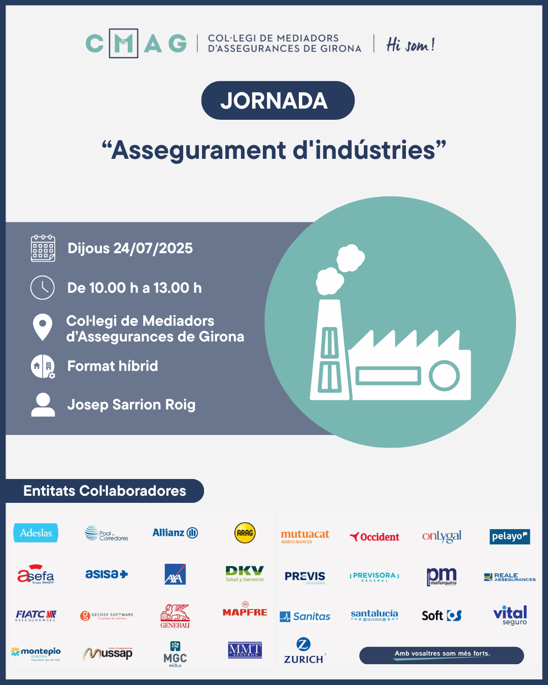 CONFERÈNCIA “Com presentem els riscos industrials a les asseguradores?” La tarifació i subscripció d’un risc industrial no és una tasca senzilla, és un dels rams més complexos que treballem i…